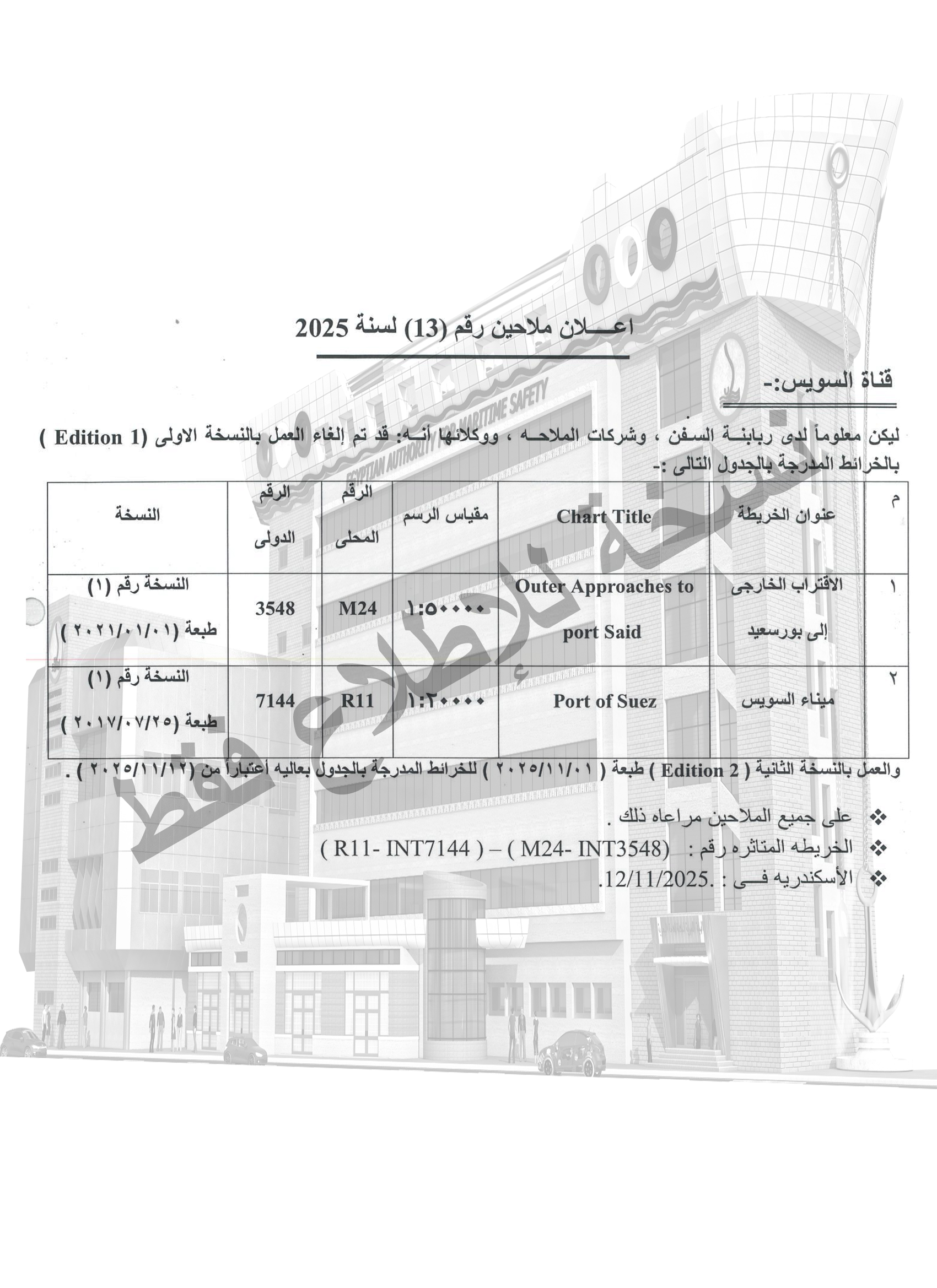| 1. | Notice No.10/2025 خليج السويس |